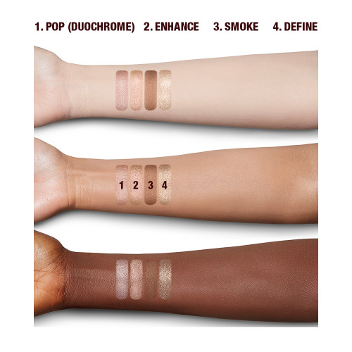 – 4 x 0.14 oz/ 3.97 g eyeshadows in shades Pop (Mother of Pearl Pink), Enhance (Pearlescent Gold), Smoke (Blush Pink), and Define (Rose Gold)