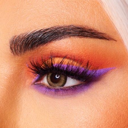 – 9 x 0.26 oz/ 7.5 g eyeshadows in intense purple, zesty orange, sweet grape, and sunkissed yellow hues