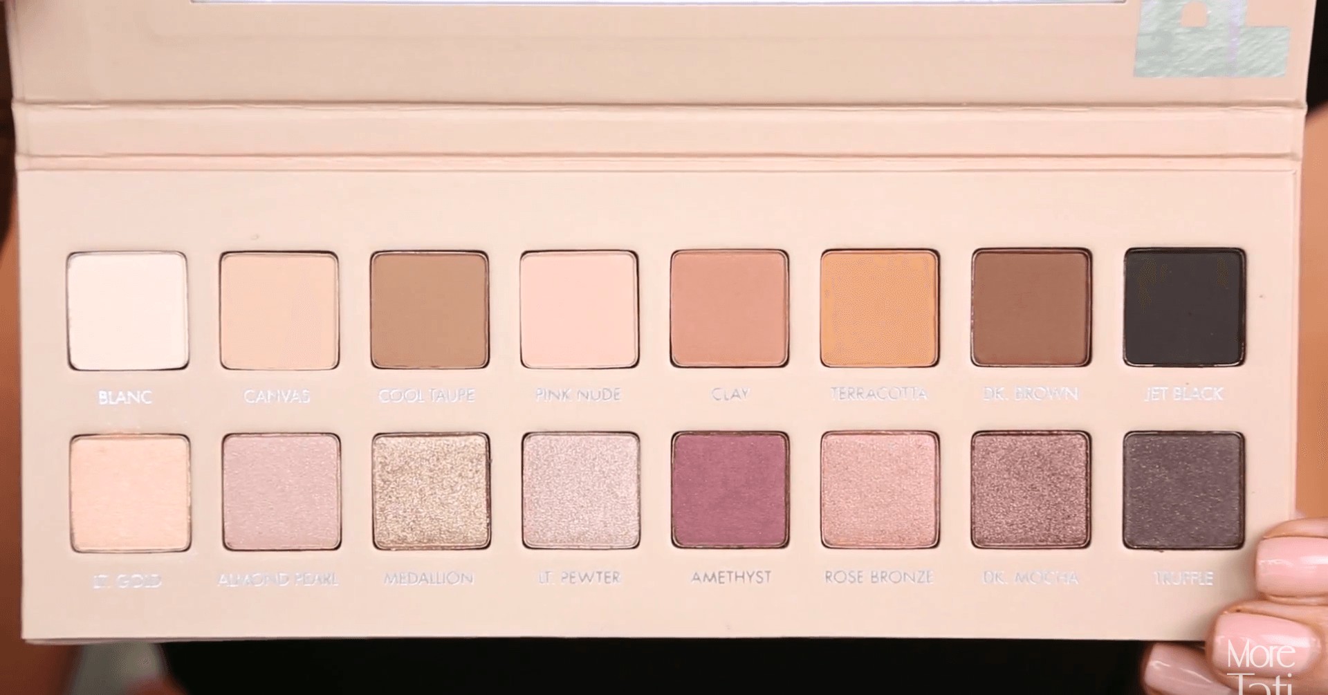 - Top Row (Matte): Blanc, Canvas, Cool Taupe, Pink Nude, Clay, Terracotta, Dark Brown, Jet Black
