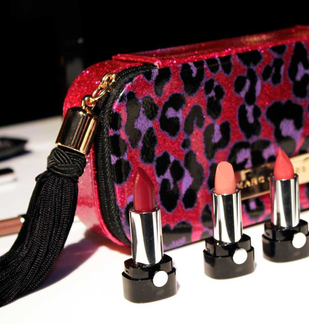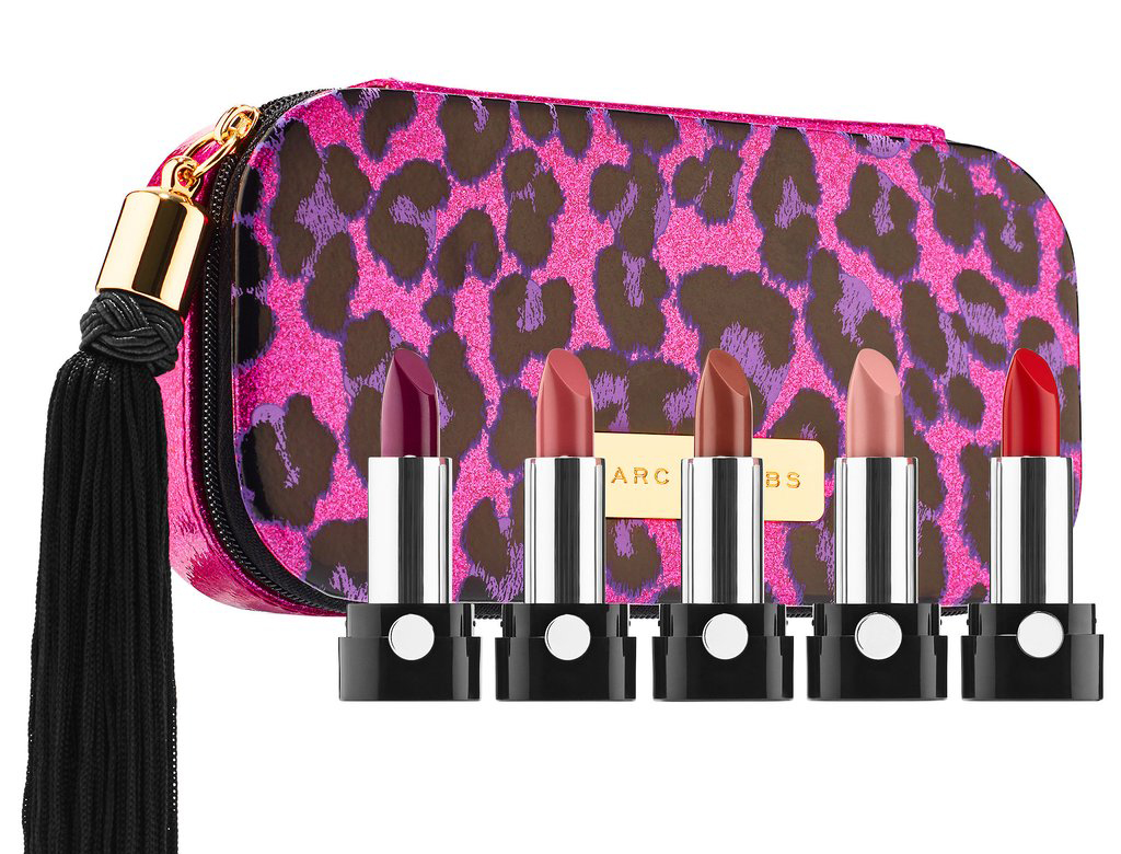 A LIMITED EDITION 5-PIECE TRAVEL-SIZE LIPSTICK COLLECTION, FEATURING BESTSELLING SHADES OF LE MARC LIP CRÈME, ZIPPED IN A VIBRANT LEOPARD-PRINT MARC JACOBS CASE WITH A SILKY BLACK TASSEL.