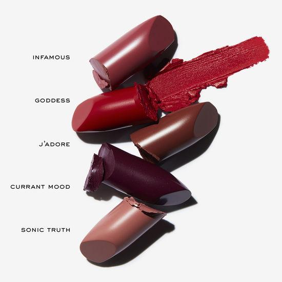 INDULGE YOUR POUT WITH MARC’S REVOLUTIONARY 10-HOUR LONGWEAR LIPSTICK THAT COVERS YOUR LIPS IN BUTTERY, CREAMY VIBRANT PIGMENT IN ONE SENSUAL SWIPE. EXPERIENCE UNPRECEDENTED COLOR PAYOFF FROM CONCENTRATED COLOR-BOOST PIGMENTS THAT ARE TRIPLE-MILLED AND STEEPED IN HYDRATING INGREDIENTS, FOR THE ULTIMATE LONG-LASTING COLOR AND LIP-PLUMPING MOISTURE. THIS TRAVEL-SIZE LIPSTICK GIFT SET FEATURES BESTSELLING NUDES, REDS AND PINK AND COMES TUCKED IN A VIBRANT MARC JACOBS LEOPARD-PRINT POUCH MADE OF VEGAN PATENT LEATHER. ZIPPED WITH A SWINGING TASSEL, THIS POUCH IS SO DECADENT, IT COULD DOUBLE AS AN EVENING BAG.