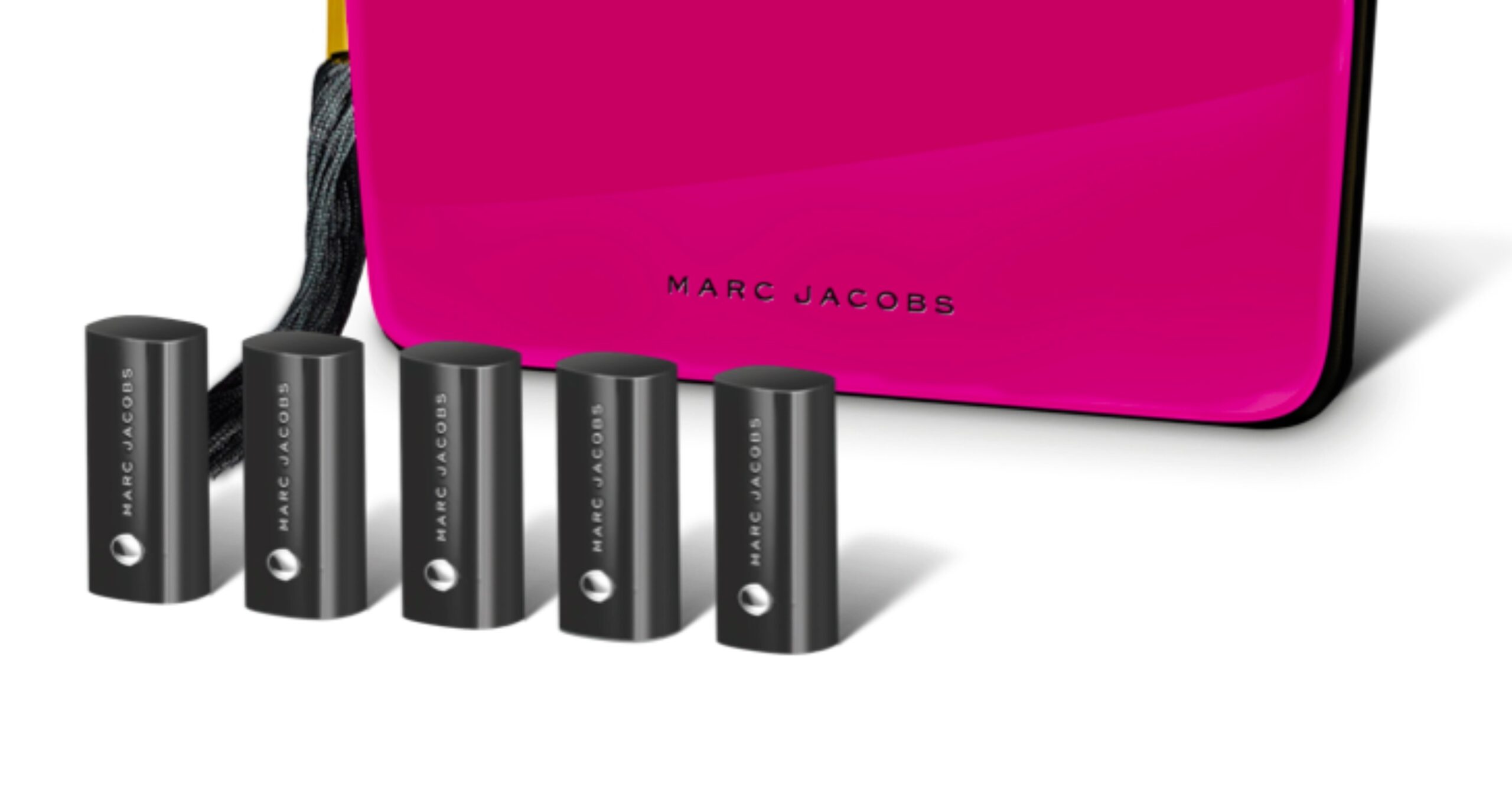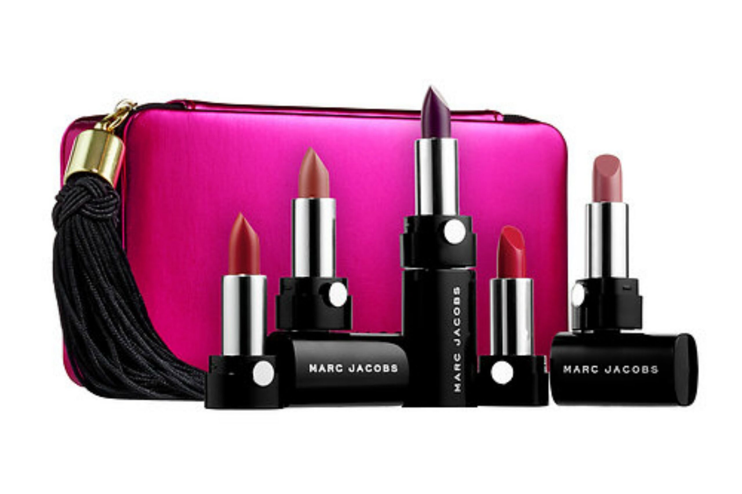 Indulge your pout with Marc’s revolutionary 10-hour longwear lipstick that covers your lips in buttery, creamy vibrant pigment in one sensual swipe. Experience unprecedented color payoff from concentrated color-boost pigments that are triple-milled and steeped in hydrating ingredients, for the ultimate long-lasting color and lip-plumping moisture—all night long. Five rich shades of Le Marc come tucked in a Marc Jacobs metallic hot pink vegan patent leather pouch. Zipped with a swinging tassel, this pouch is so luxe it could double as an evening bag.