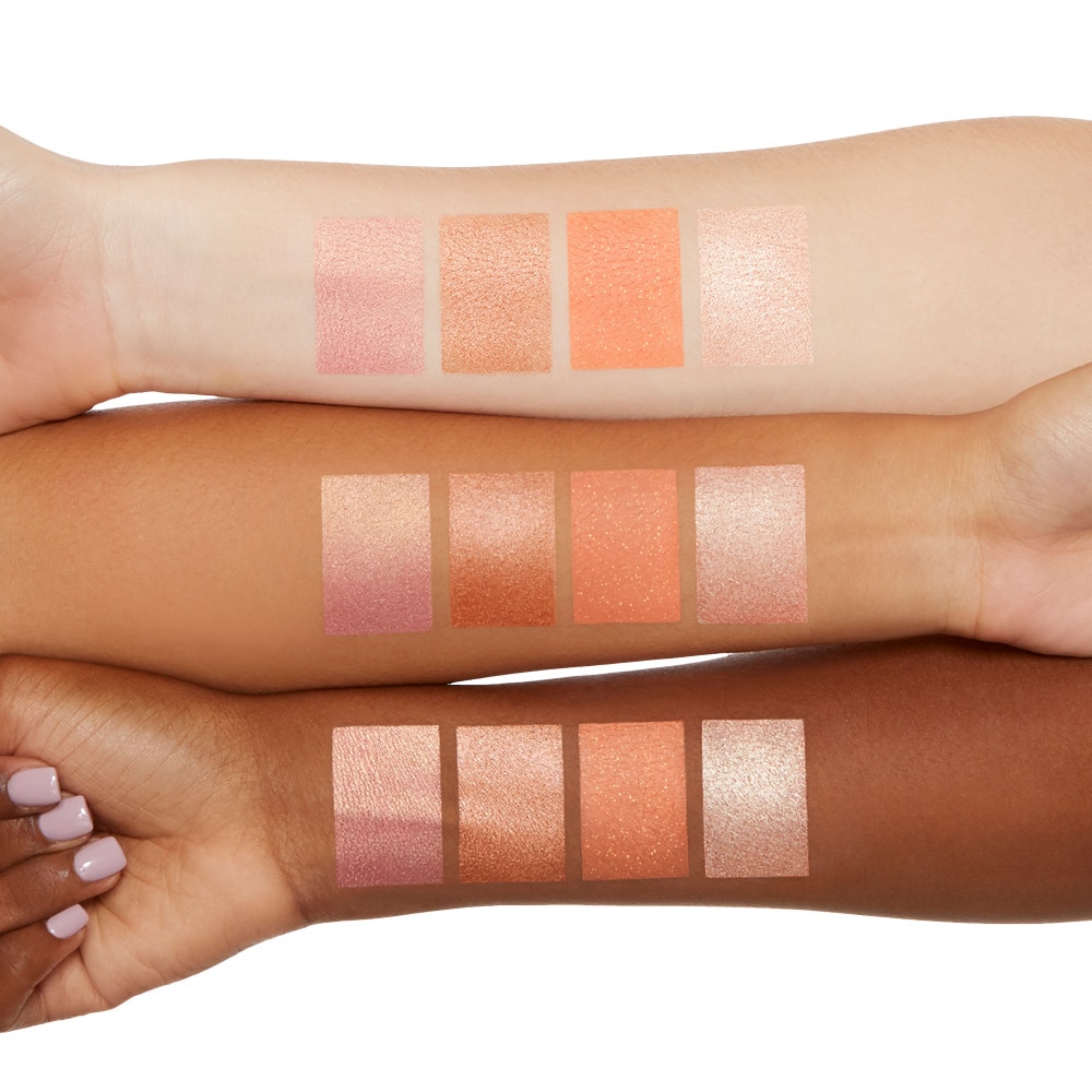These 4 pearlescent powders deliver one-swipe payoff, seamless wear, and treat your face and eyes to new levels of radiant dimension. Use palette wet or dry to create limitless looks—dry for a soft glow and wet for an intensified, luminous finish.
